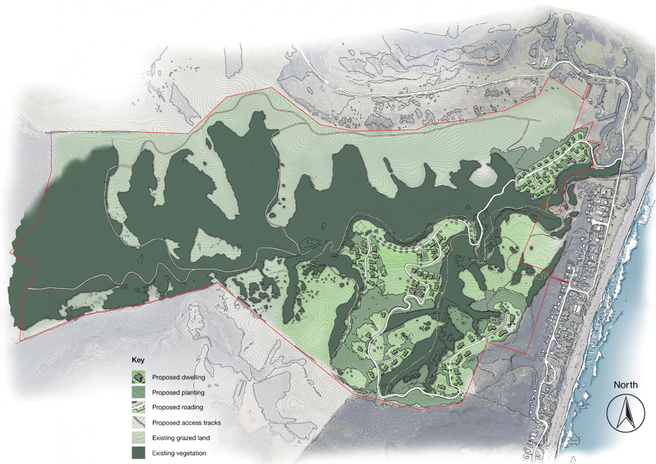- Stage One, Buxton Creek Terraces (illustrated), is the cluster closest to the beach, and hence section-sized appropriately to a holiday bach environment.